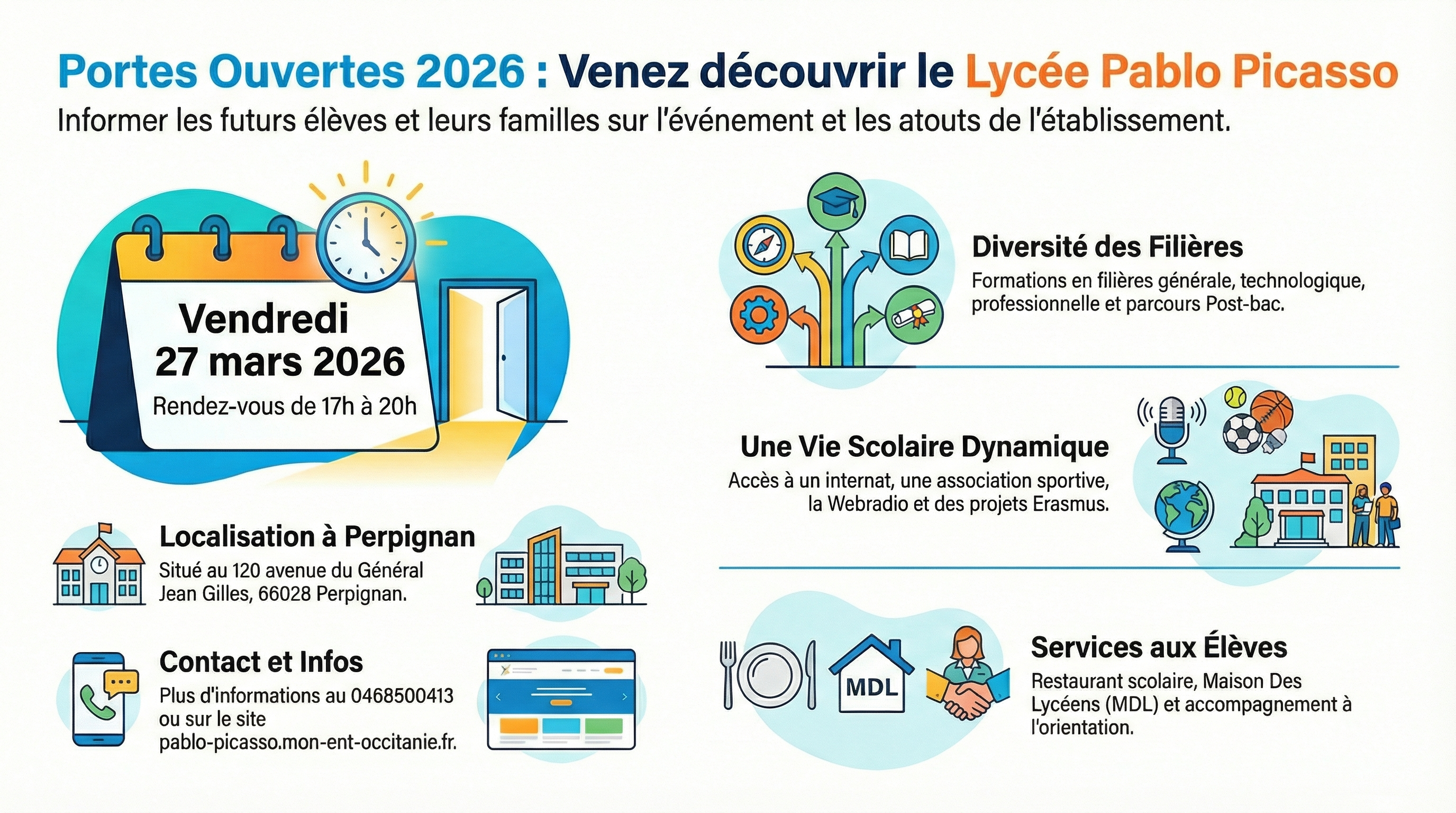 Le lycée PICASSO ouvre ses portes le vendredi 27 mars 2026.
